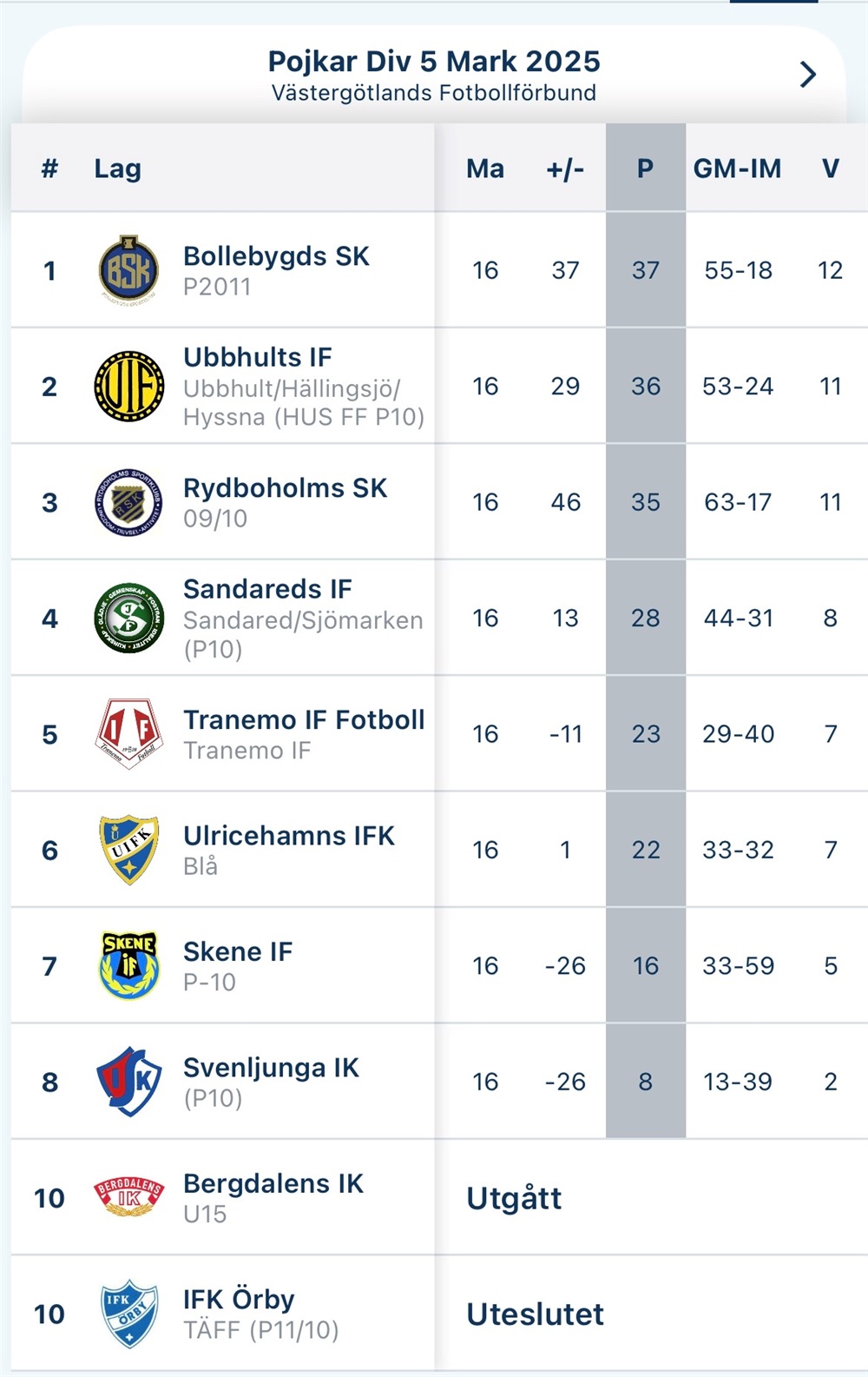 För några timmar sedan vann Bollebygd serien efter en klar bortaseger mot Skene. Just Bollebygd är det enda laget som vi inte lyckats ta poäng av. ALLA andra lag har vi lyckats vinna mot eller ta poäng av. Det är verkligen inte fy skam. Vi har mött lag med 10:or och 09:or som väger dubbelt så mycket och är tre huvuden längre.